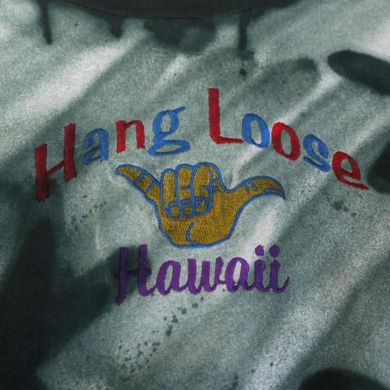 色糊を使用し、スプレーで吹きかけた様なアートワークを染色した1枚。