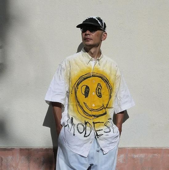 MODESTY INDUSTRY SELECT "Hand Dye Smile Logo S/S Linen Shirt "