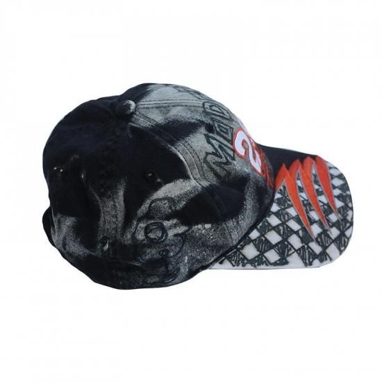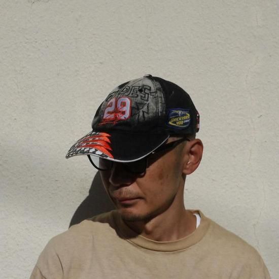 インパクある大胆な刺繍の施されたレーシングキャップをベースに、