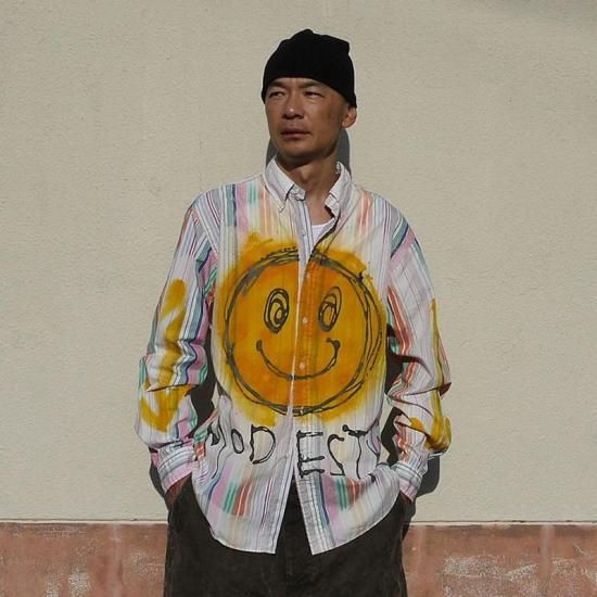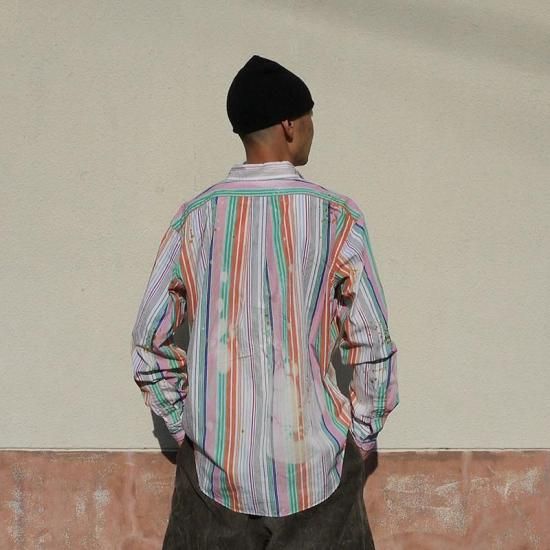 MODESTY INDUSTRY SELECT "Hand Dye Smile Logo L/S Stripe Shirt"