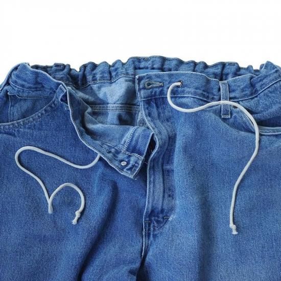 ウエストには紐を付けることでイージーパンツ仕様になっております。